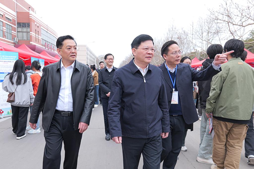 为贯彻落实全国两会精神,按照教育部 2024 届高校毕业生春季促就业攻坚行动和省委、省政府第一季度就业工作“开门红”决策部署,3月23日,我校于南校区明德广场成功举办了河南高校就业市场焦作分市场暨河南理工大2024年春季线下大型校园双选会(第一场)。校党委书记邹友峰、校长赵同谦、校党委副书记解伟等校领导到招聘现场考察指导工作。