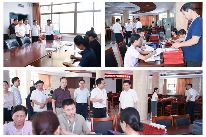7月21日上午,校党委书记邹友峰、校长赵同谦亲临我校2024年普通高招录取工作现场,全面检查并指导我校普通高招远程录取工作。