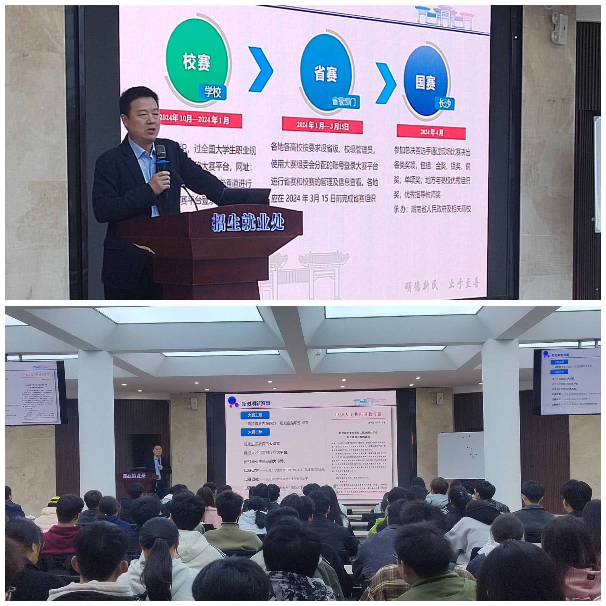 为切实做好第二届全国大学生职业规划大赛校赛的备赛准备,提升我校教师对参赛学生的指导能力,提高其综合素质和竞争能力,11月22日下午,我校在大学生活动中心招聘大厅开展了第二届全国大学生职业规划大赛校赛备赛指导活动。各学院(书院)党委副书记、辅导员、大赛指导老师、种子选手等200余人参加了此次活动。