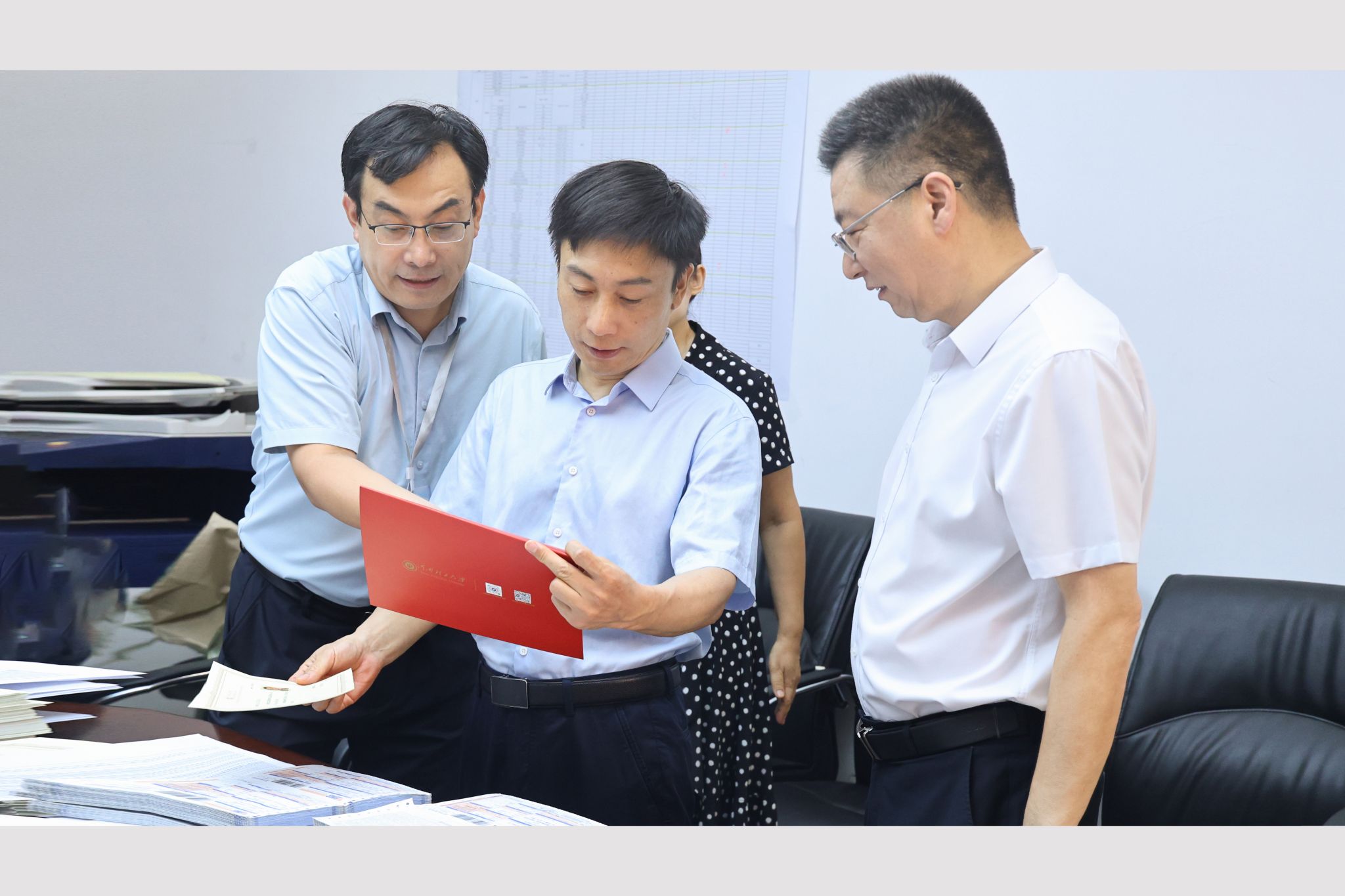 在招录现场,校领导们听取了招生就业处关于我校2025年普通高招录取工作总体安排和目前进展情况的汇报,实地查看了录取数据处理、录取通知书打印及邮寄、考生报录档案打印等环节,深入了解录取工作的具体实施情况,对当前录取工作的有序推进给予充分肯定。