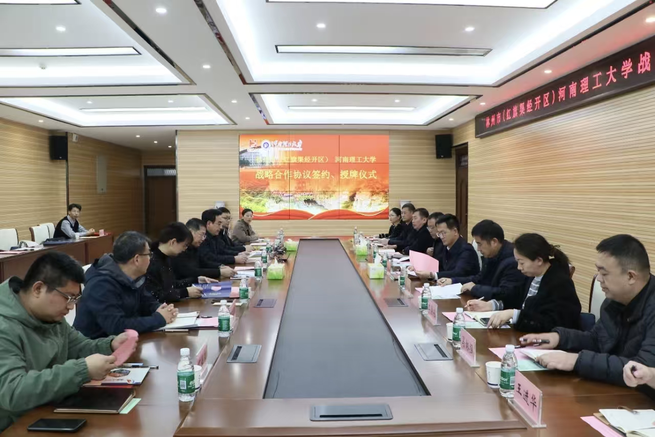 校地携手谱新篇,合作共赢启未来。11月11日上午,学校与林州市(红旗渠经开区)战略合作协议签约及授牌仪式在物电学院235会议室举行。林州市委常委、组织部部长刘树伟一行到校交流并签约授牌,副校长边亚东出席仪式并致辞,仪式由招就处处长许传阳主持。