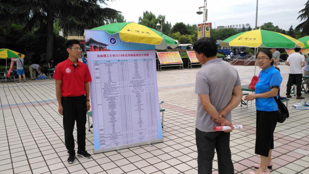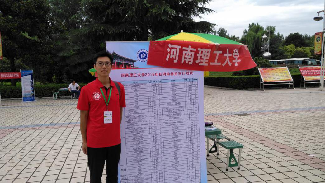 按照学校、学院的统一安排部署,我于 2018 年 6 月 26-30 日参加了“升学在线——2018 年河南省高考招生报名现场咨询会”,奔赴河南省内四个城市(洛阳、南阳、平顶山和许昌)的七所高中为河南理工大学进行高考招生宣传。招生所到学校包括嵩县第一高中、伊川县第一高级中学、镇平县第一高级中学、汝州市第一高级中学、郏县第一高级中学、禹州市第一高级中学、长葛市第二高级中学。