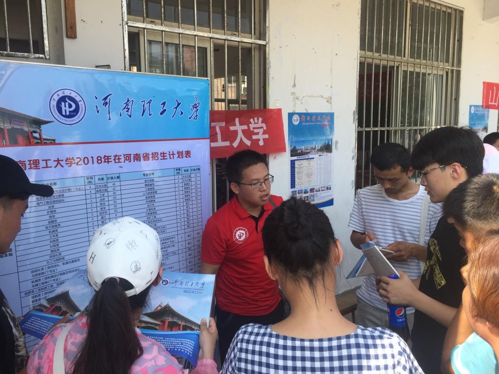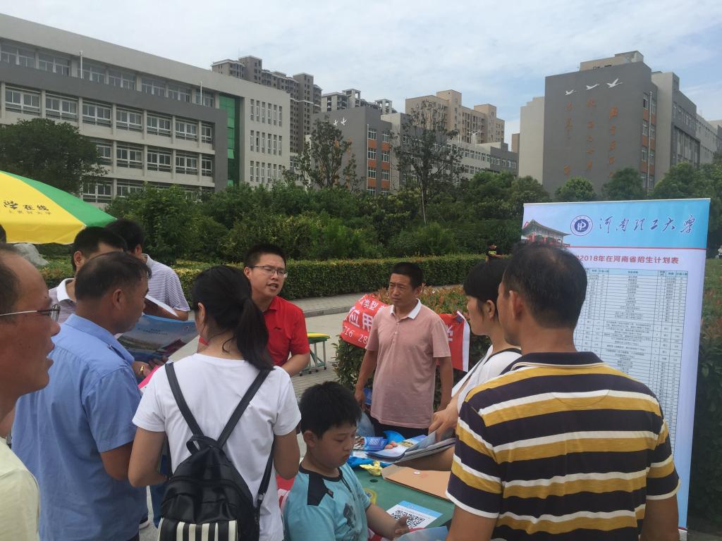 6月26日晨8时半,高招咨询会第一站在项城一高按时举行,。作为线路四唯一一本以上招生的学校,我校宣传展位前不断有考生和家长前来咨询,我们携带的招生简章和宣传资料在两小时内全部发完。考生和家长咨询的问题多集中于学校地理位置、学校性质、投档比例、调档分数线、强势专业等,我们一一为其做出解答,并为考分达到本省一本分数线的考生及其家长详细介绍了我校今年一本招生的电气信息类、机械类、土木工程和计算机专业。