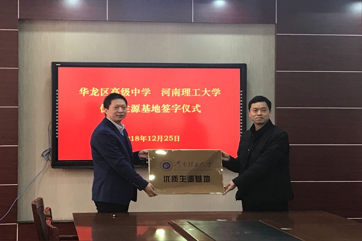 为了顺应考试招生制度改革的新形势,做好招生宣传工作,全面提高生源质量,有效落实《河南理工大学关于进一步加强招生宣传工作的意见》,近日,测绘学院分别赴安阳市滑县、濮阳市开展优质生源基地考察,并代表学校与滑县第三高级中学、第六高级中学、濮阳华龙高级中学签订优质生源基地建设协议并举行挂牌仪式。