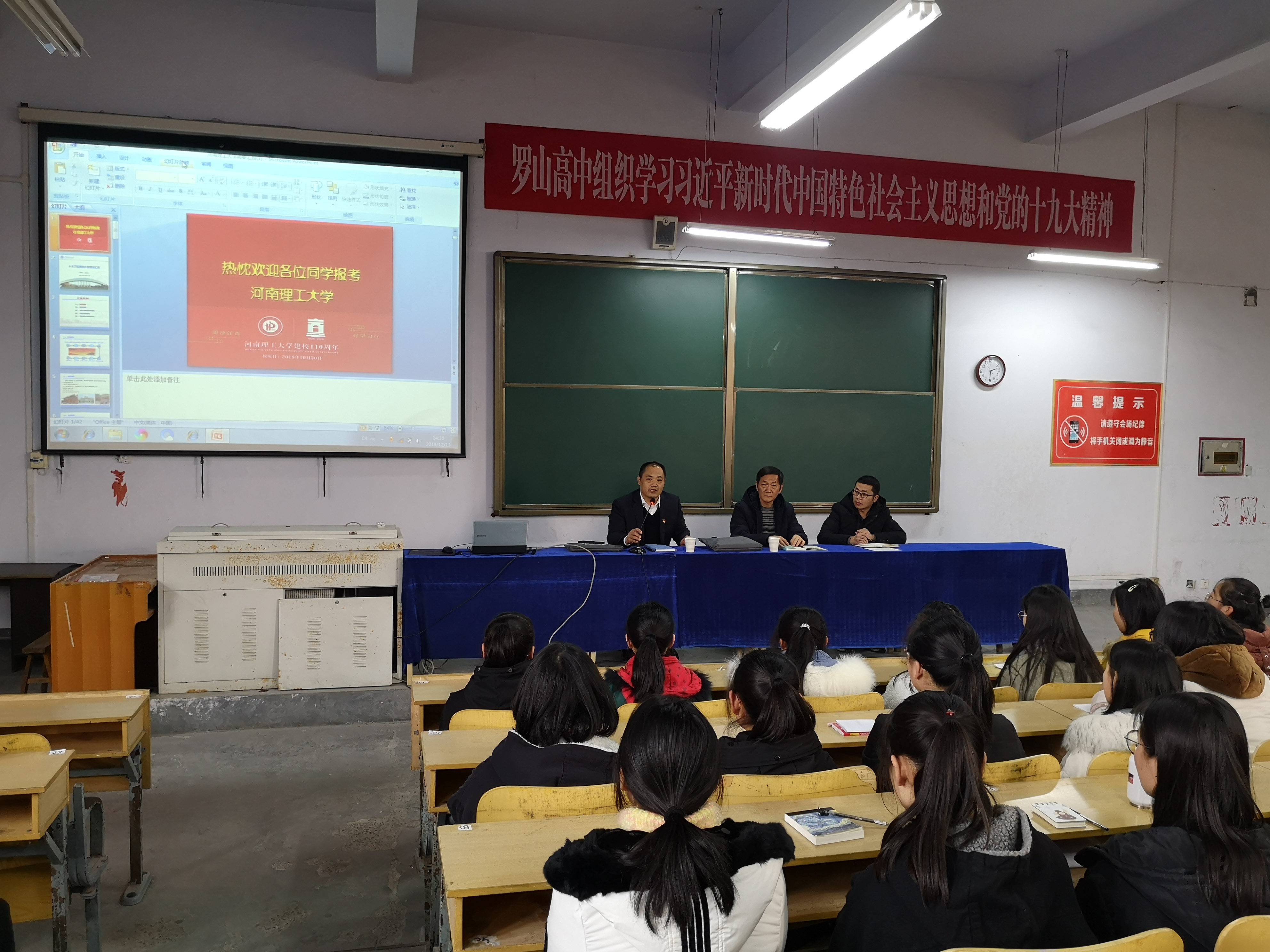 12月13日-14日,土木工程学院党委副书记尹铁军一行四人赴我校优质生源基地信阳市罗山高级中学、罗山县第二高级中学、罗山县楠杆高中开展了招生宣讲活动。