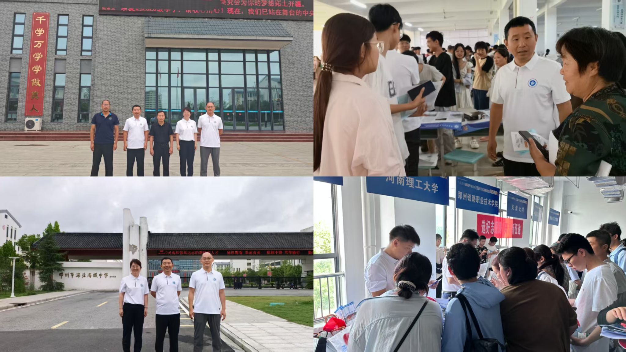 6月21日,郑伟一行赴新乡市,参与由新乡人才集团主办的 “助力高考・圆梦未来 ——2025 年公益高招咨询会”活动。活动现场,郑伟详细介绍了学院办学特色与育人优势,并针对考生及家长关切的志愿填报、专业培养等问题进行耐心解答。6月25日至28日,谢珺一行先后走进南阳邓州一中、邓州二中、邓州湍北高中、内乡高级中学,开展 2025 年高考招生宣讲活动。宣讲团从学院办学历程 、特色专业 、志愿填报与招生计划等方面,系统解读学院人才培养体系与专业优势。期间,宣讲团与各中学领导进行座谈交流,通过推介学科实力与就业前景,深化与生源地高中的合作联系,为招生工作提供有力支持。
