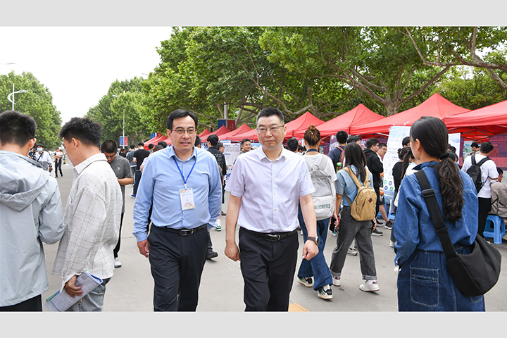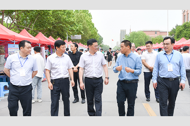 5月11日,第七届中国•河南招才引智创新发展大会“引才聚焦 智汇怀川”焦作系列活动暨学校(焦作分市场)双选会在我校南校区明德广场举行。校长赵同谦、校党委副书记解伟亲临活动现场考察指导工作,并与用人单位及学生进行了亲切交流。河南省人才交流中心副主任梁小选、焦作市人力资源和社会保障局副局长于同文莅临活动现场进行了巡视指导。